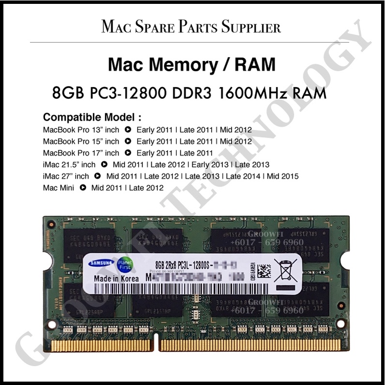 8gb 16gb Pc3 12800 Ddr3 1600mhz Mac Memory Ram For A1278 A1286 A1297 Macbook Pro Imac Mac Mini Shopee Malaysia